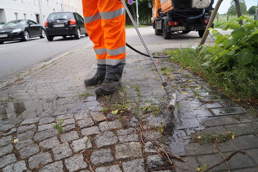 Bei der Wildwuchsbeseitigung mit Heißwasser wird nahezu kochendes Wasser (ca. 95–100 °C) gezielt auf die Pflanzen aufgebracht.